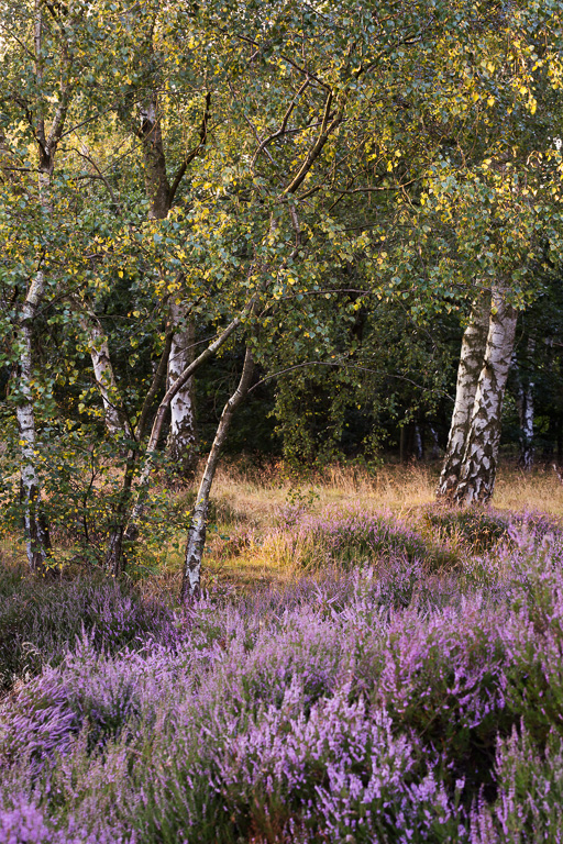 Photographing heather on the boundaries or within woodland is particularly satisfying. Early growth birch with its white trunk and speckled green/yellow leaves and mountain rowan’s rich red berries can create great colour contrast.