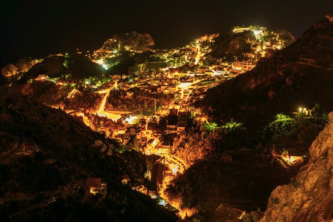 These images were made while working in Sicily. For a couple of days we had spectacular sunsets and late afternoon storms that produced spectacularly coloured skies with the light reflecting on the mountain top were were working on. The brickwork and the tiles of the local houses seemed to absorb the colour of the evening sky and take on it's glow.
