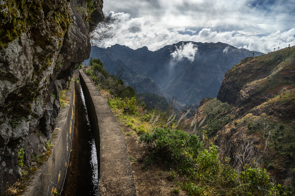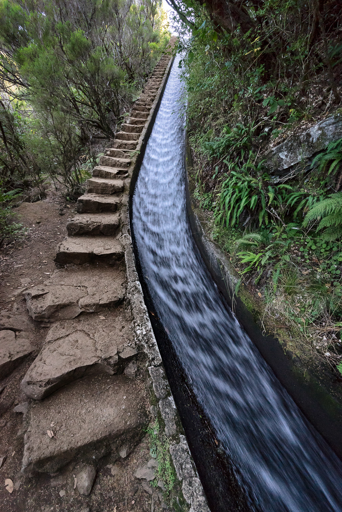 The Portuguese island of Madeira is a steep sided (and hopefully) extinct volcano located about 300 miles from the Atlantic coast of Morocco. The island's agriculture is supported by the capture and distribution of rainwater by well over 1000 miles of levadas or rainwater channels. That's a lot of levadas given that the island is only about 300 square miles. The levadas have been built over the last several hundred years and deliver water from around the island to where it's needed for agriculture. Many of the levadas have paths by their side that can be walked, and, as they're almost on the level they are mostly very easy.