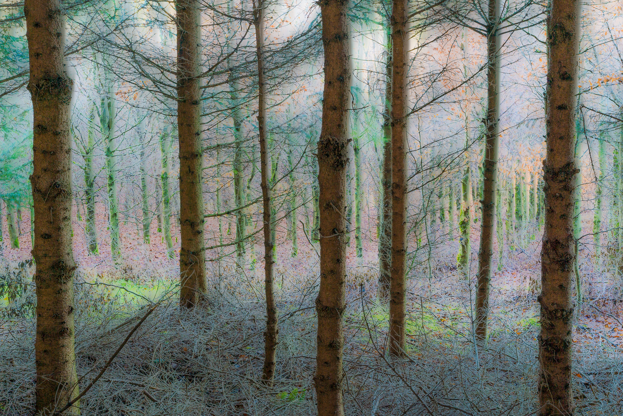 For me, photography is a way to enhance activities I enjoy, and one of them is walking alone in forests. Last year, I started making images of forests to try to capture the qualities that make them so infinitely fascinating, and convey the sense of solitude, depth and discovery that I experience there. In the forest, the viewer is surrounded, and both seeing as well as passing through. Is it possible to capture this experience in a flat rectangular image?