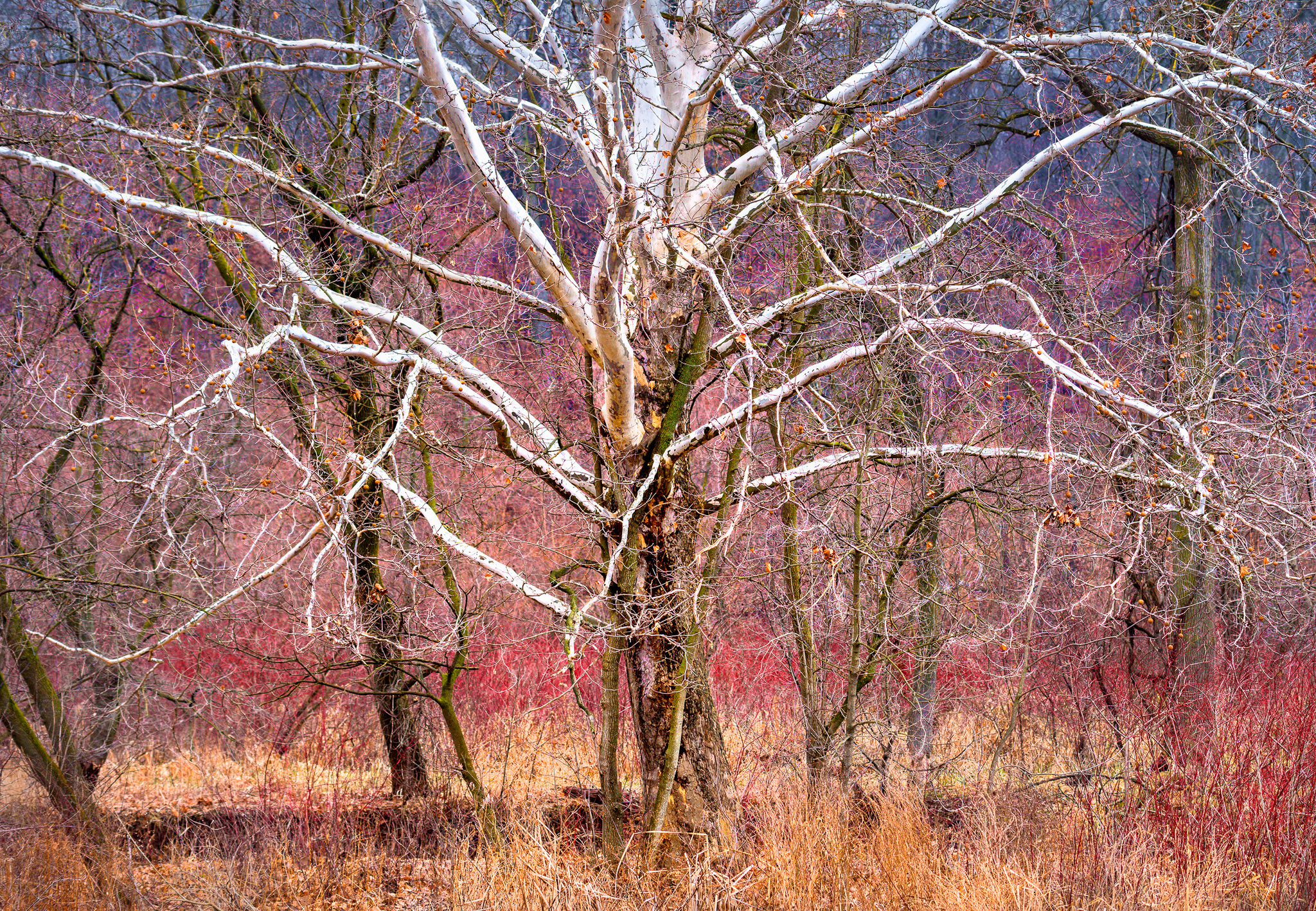Expressive pictures often suggest several choices of interpretation that can be offered to the viewer in the titles. If we want the viewer to treat this image as a study of colour and texture, we might title it November Tapestry. Or we could focus attention on the straggly old tree, still upright and beautiful amid the tangled undergrowth, in which case an anthropomorphic title like Forest Veteran or simply The Veteran might be suitable.