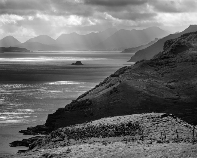 Kylerhea to Breakish road through Glen Arroch looking to Knoydart Peninsula. Looking toward Broadford and The Cuillins in the distance