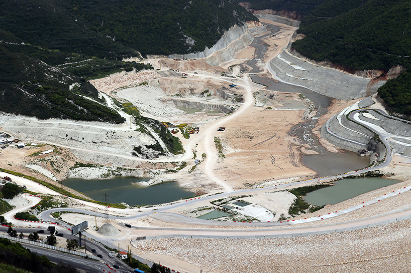 Aerial views show the irreversible damage that Mseilha's artificial dam has caused to the Lebanese natural heritage. There seem to be no limits for the excavation borders that are continuously expanding and eating up the surrounding existing landscape. The scale of the stone wall built to support the dam is, by itself, massively huge.