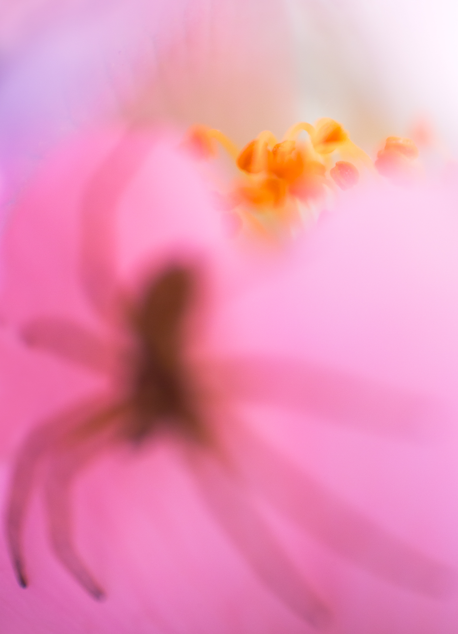 One strange thing about this image is that I usually don’t make macro photographs. It happens quite rarely and only in some situations. This one is made with an inverter mounted on my usual 24-70mm f4 lens. One very warm summer evening, I went out for a walk with some ideas in my mind regarding the way I would photograph, but nothing could have prepared me for what was to happen. The park that I visited had some high bushes hosting beautiful pink flowers. The type of flower was quite perfect for what I had in mind to do. I shot many images. It was hot and quite difficult to pinpoint the flowers with the camera. This type of photo is difficult because you need to stay very still when pressing the button, and you need to move millimetres to and fro in order to focus on what you want. When I saw the spider resting on a petal, I realised that I might have an interesting image. All I had to do was to wait for the right moment. Then an idea crossed my mind. What if I get the spider unfocused and the flower in focus?! The final impact was really beautiful.