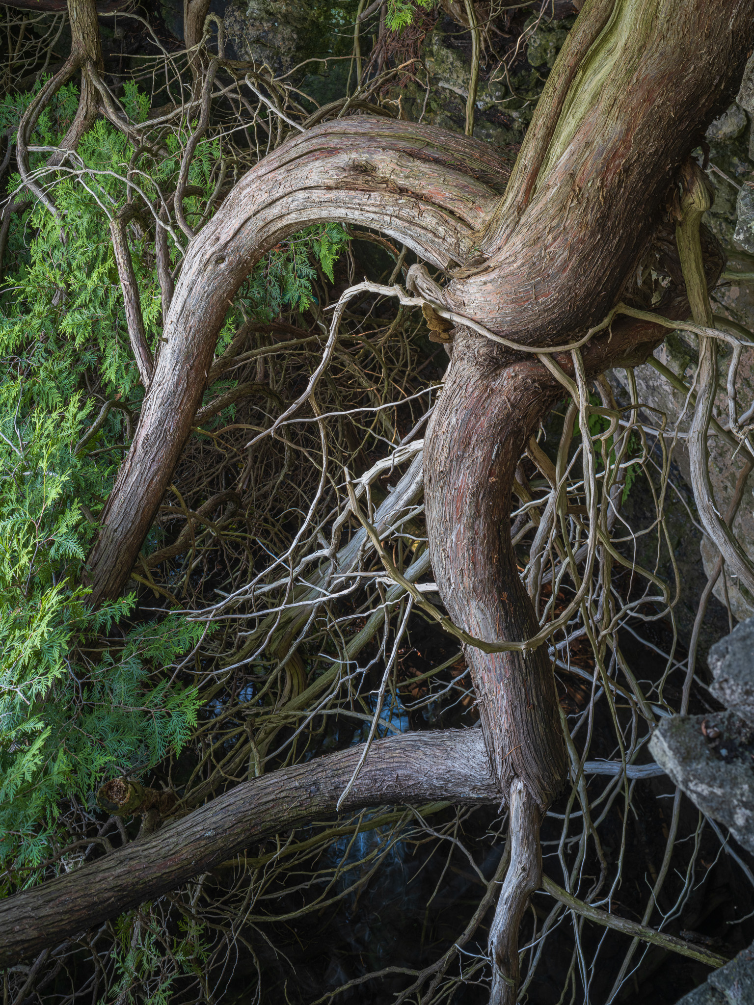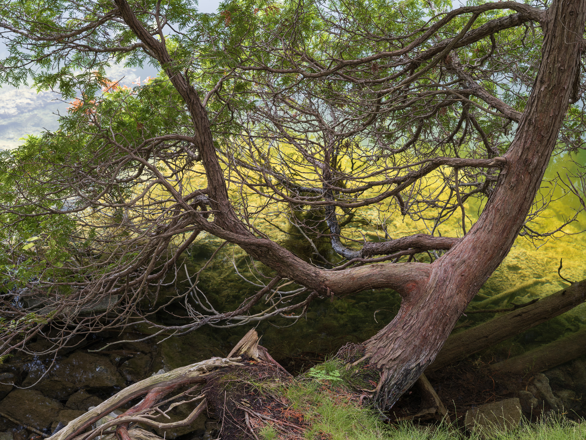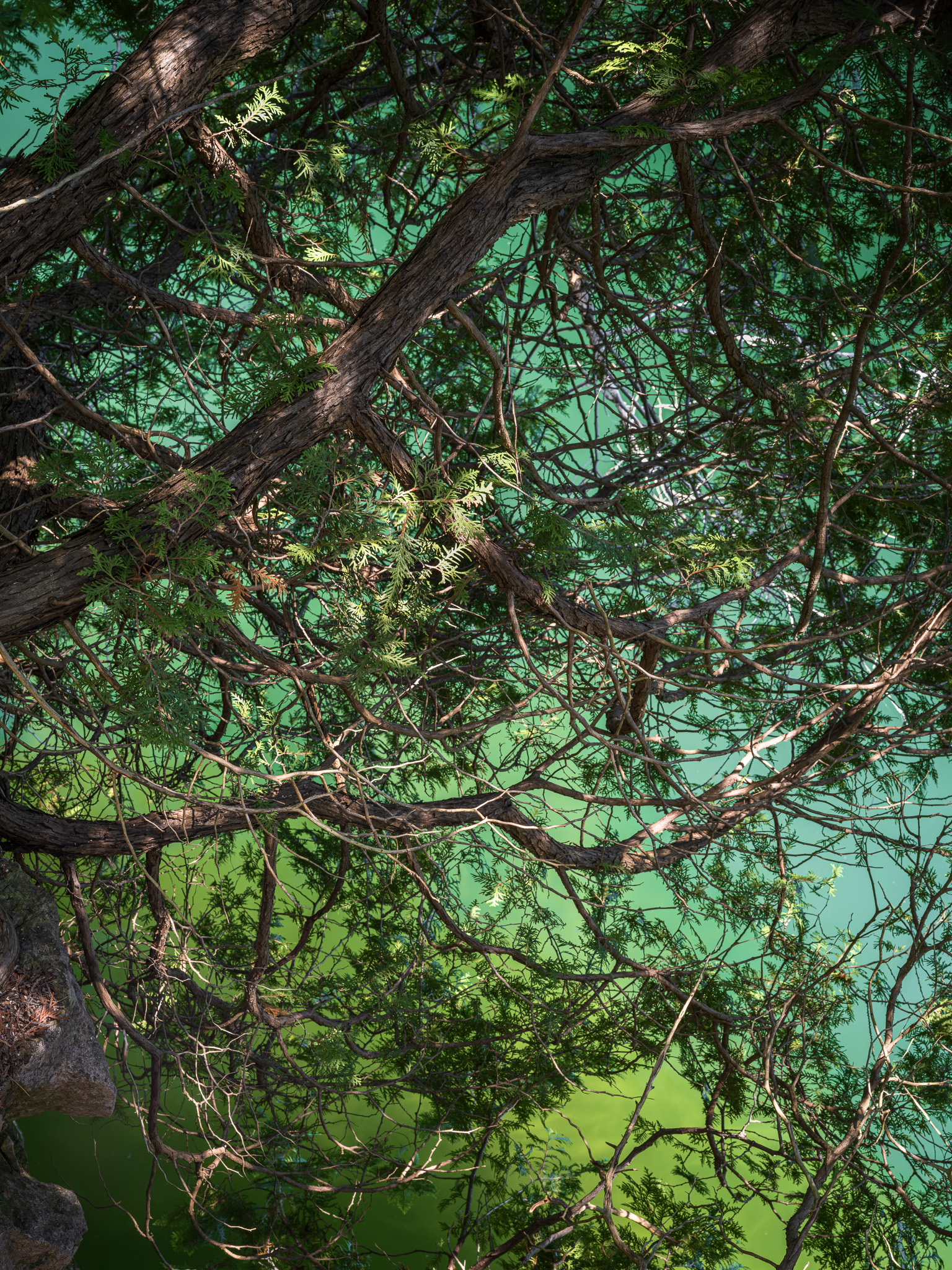 A good example is this eastern white cedar that is growing upside down from the side of a limestone cliff, into the water of Crawford Lake. I was excited to share this photograph with my CH collaborators because I considered it a good fit for the part of the story that showcased the ecosystem around Crawford Lake. However, its strangeness did not resonate with my colleagues, and they were concerned that our intended audience would not understand what they were seeing. Communication and understanding are essential to the success of the project; thus, the image did not make the cut.