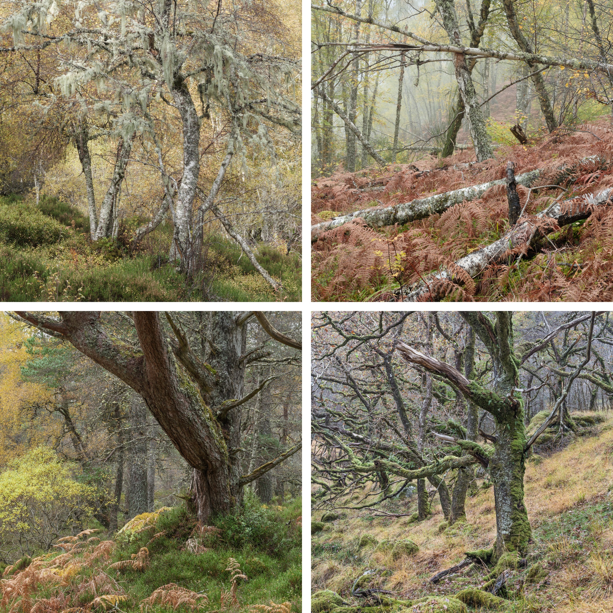 The overall collection of photographs was taken over some years in several nature reserves, which has been identified by Scottish Forestry, a Scottish Government agency, based on the “Native Woodland Survey of Scotland”. The nature reserves are located
