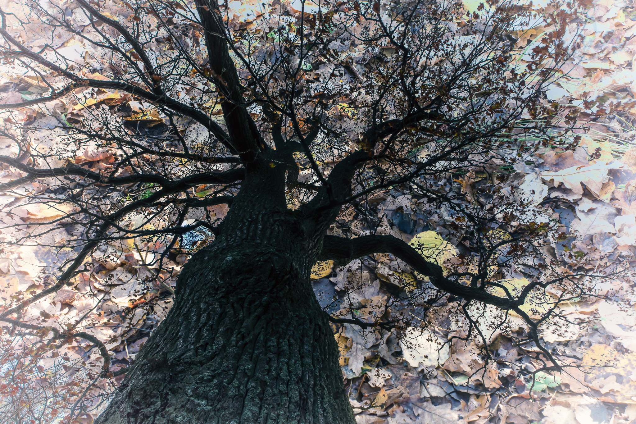 One example of how these early experiences still shape me is a nostalgic October walk I took in Turku a few years ago. I climbed the same rocky hills where my grandfather once showed me the ferns, the twisted pines, the shapes of the cliffs, and the views over Turku’s seven hills. These rocks have always felt like my soul’s landscape. From there, I continued deeper into the forested area, seeing its sturdy oaks through the eyes of my younger self. The ground was scattered with autumn leaves, and as I photographed the scene, I felt a magical sense of being both my present self and the child I once was—wandering through the places that shaped my imagination. I created the double exposure in-camera, scattering the autumn leaves across the sky in that very moment.