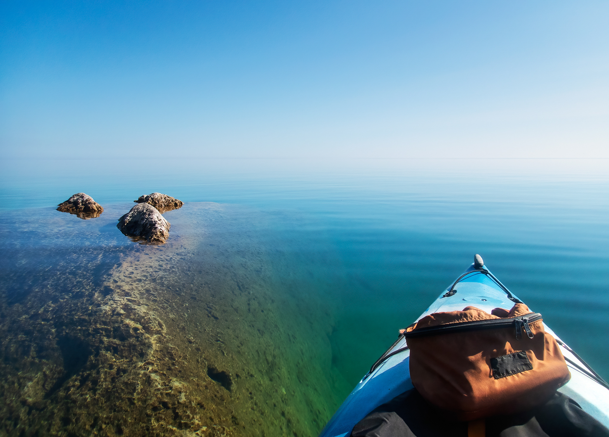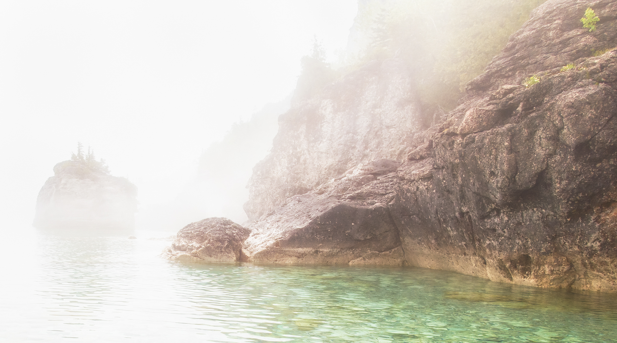 First time visitors to the Bruce Peninsula shore of Georgian Bay remark on the Caribbean hues of the water. Its clarity and depth absorb and reflect a vivid and ever-changing palette of greens, blues and purples. Caution and common sense are the watchwords when venturing any distance from shore, however. Millpond conditions, when the exquisitely reflective water melds with the soft ether above, can change quickly to tumult and chaos.