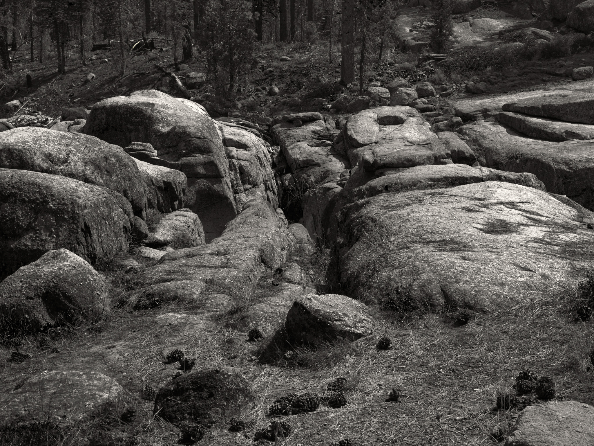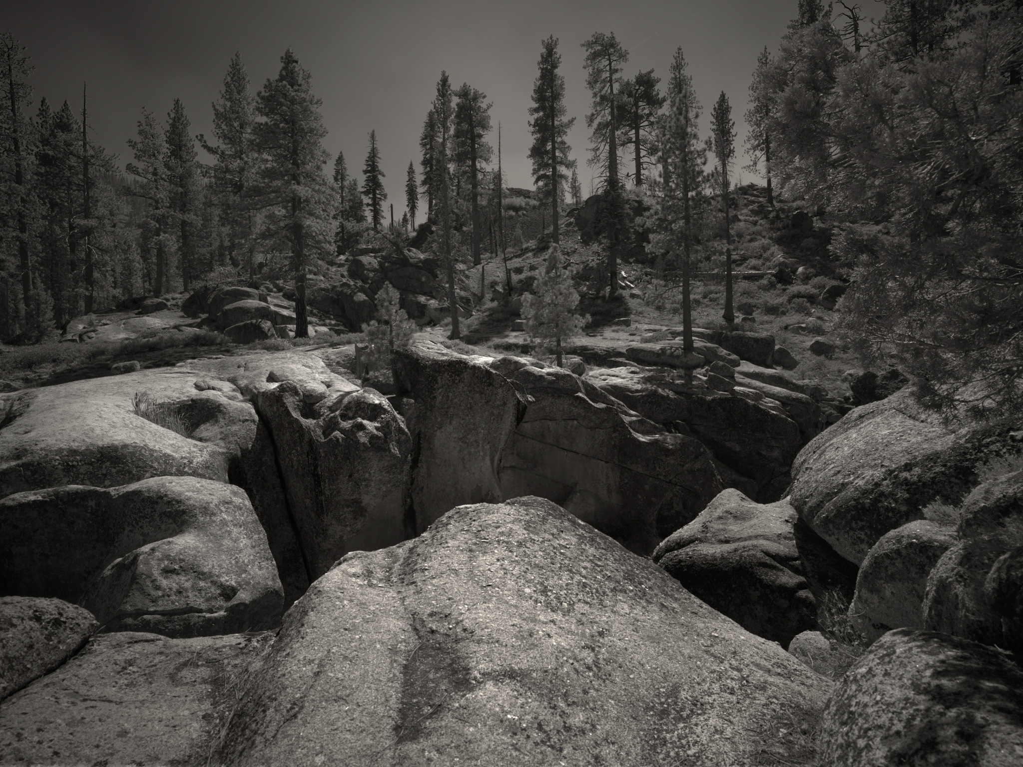 There are few tourists—hardly any traffic at all because it isn't burdened with the brand equity, if you will, of Half Dome, El Capitan, or Bridalveil Falls. It doesn't suffer the bumper-to-bumper traffic attracted by such iconography and romance associated with Yosemite, popularized by Ansel Adams. I wouldn't expect you'd see many bears stopping to oggle the tourists, either. Or is it the other way around. The only other humans I came across were fly fishers parked off the road, here and there, along the Stanislaus River, its headwaters tumbling down through deep granite canyons from the summit.