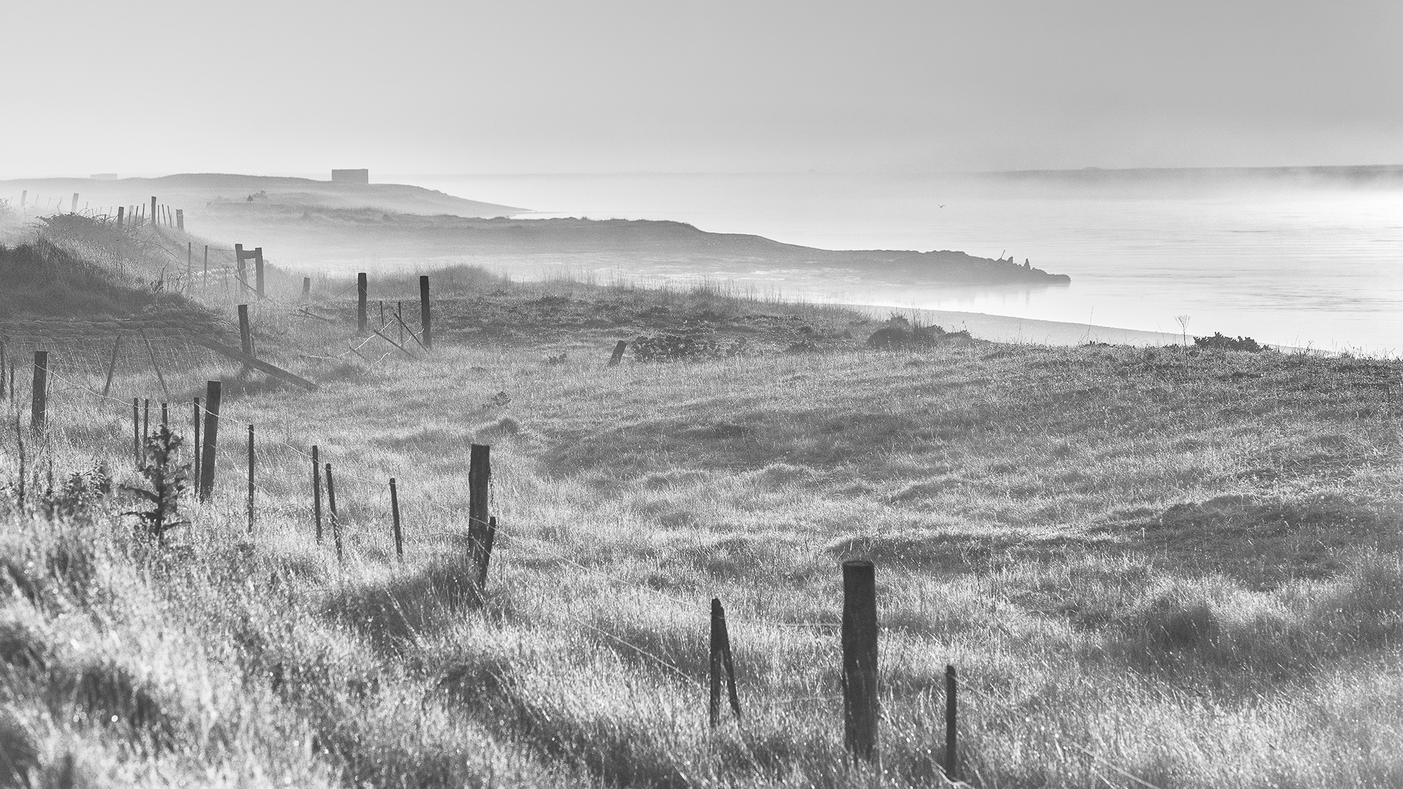 The simple delineation between the ground and sky using subtle changes of grey tones allows the curved V-shaped horizon to sweep across the image gently and is critical in forming a feeling of depth and space. more